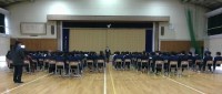 明日、いよいよ3年生は私立高校入試に臨みます。決起集会よろしく、3年生全員が体育...