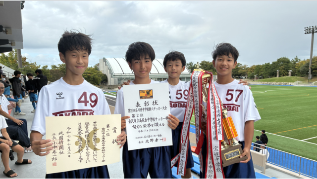 10月11日(土)~13日(月)の3日間にかけて行われた石川県新人サッカー大会において、高尾台中サッカー部が第2位に輝きました!日頃の練習の成果を発揮し、最後まで粘り強く戦い抜いた選手たちの姿に大きな拍手を送ります。今後の更なる活躍にも期待しています。