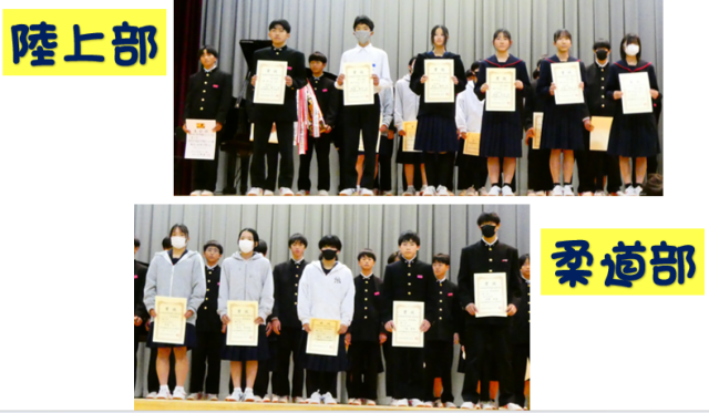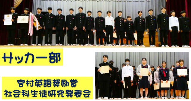 はじめに、各種大会やコンテスト等で活躍した生徒への表彰伝達があり、全校でその努力と成果をたたえました。