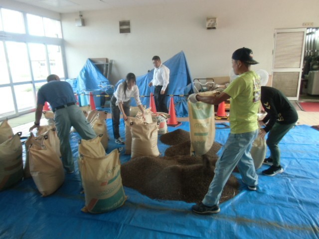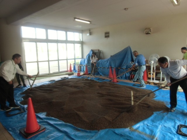 昨日収穫した学校田の稲穂を脱穀し、籾を広げて自然乾燥させています。おいしいお米になるまで、もう少しです。