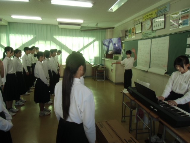 今日から終礼時に、各教室で合唱コンクールに向けた練習が始まりました。10月31日(金)の合唱コンクール本番に向け、クラスで協力し素敵な合唱が完成することを期待しています。