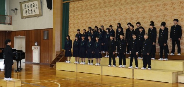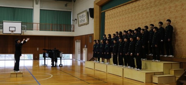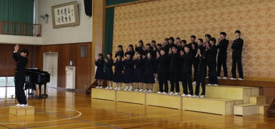 本日(31日)本校の体育館にて、合唱コンクールを開催しました。スローガンの「合唱魂~百歌繚乱奏でる美声で最優秀賞を掴み取れ~」のもと、およそ2週間にわたって練習してきたクラス合唱の成果を披露しました。体育館いっぱいに美声とクラスの思いが響き渡り、たくさんの「感動と笑顔」を見ることができました。