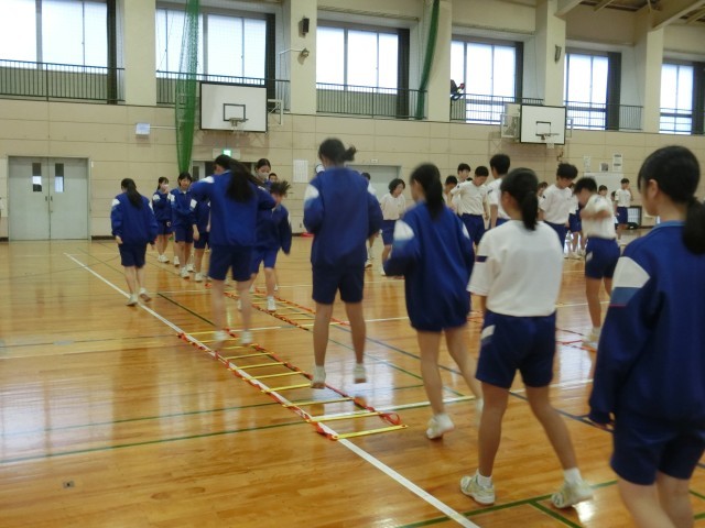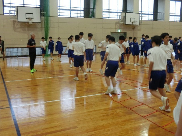 10月14日(火)6限目に、野村泰裕様を講師としてお招きし、ラダー講習会を開催しました。「ラダー」とは、はしごのようなトレーニング用具で、効果的に活用することで体力アップを図るものです。講師の方からいろいろな活用方法を学び、実際に行ってみました。これから冬のシーズンとなり、部活動では校舎内でトレーニングを行う日が増えると思いますが、ぜひラダーを有効活用して、来たるべく春の大会に臨んでほしいと思います。なお、今週の金曜日に1年生を対象としたラダー講習会を実施する予定です。講師の野村様、ありがとうございました。