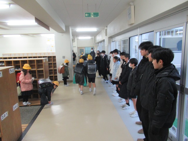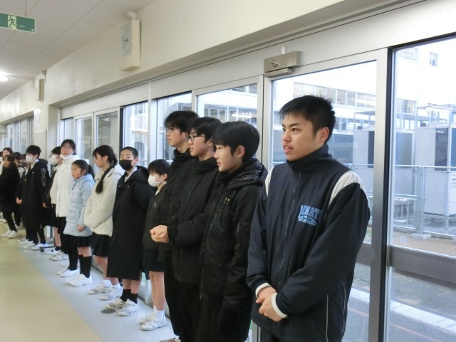 1月9日(金)に、小中あいさつ運動が行われました。本校から生徒会役員を中心としたメンバーが、校区の2小学校に赴き、小学生と一緒にあいさつ運動を行いました。寒い朝となりましたが、その寒さを吹き飛ばすように元気に挨拶して気持ちよく一日をスタートできましたね。これからも積極的に挨拶を交わしていきましょう。参加してくれた生徒の皆さん、お疲れさまでした。