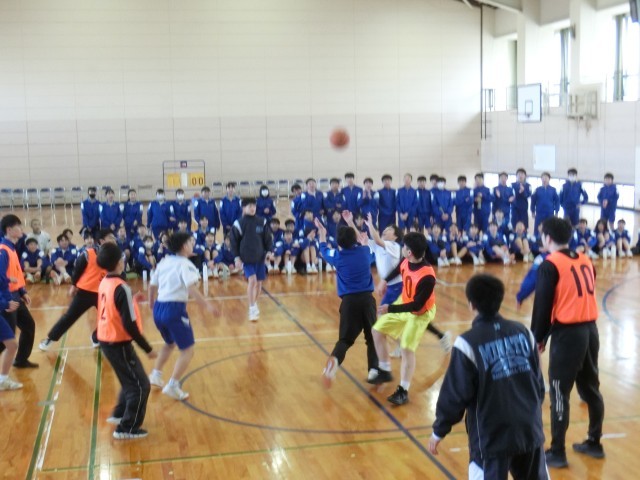 今日3月10日(火)と11日(水)は、公立高校の一般入試の日です。寒い朝となりましたが、受検する3年生たちは、元気に試験会場に入りました。全力を尽くして頑張ってほしいと思います。一方、2年生は、体育館で今年度最後の学年行事である「球技大会」を行いました。体育館に響き渡るような大きな声でお互いに声援を送り、楽しい行事となりました。最後には、先生チームとのドリームマッチも行われ、みんなの思い出に残る良い一日でした。明日は、1年生の球技大会が行われます。