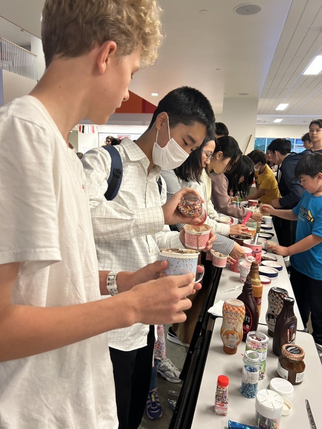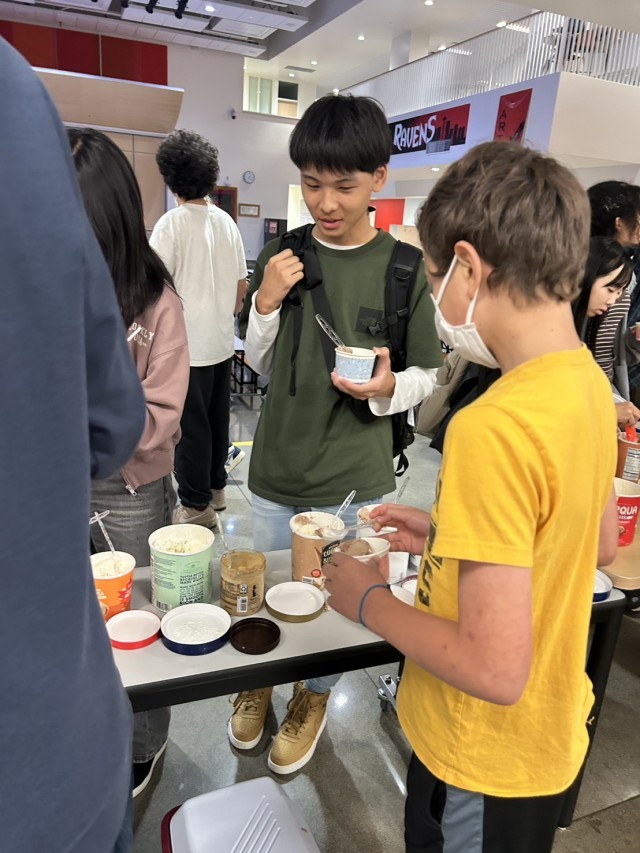ロバート・イーグルスタッフ・ミドルスクール到着後、ホストファミリーに迎えられ、一緒にアイスクリームを食べました。