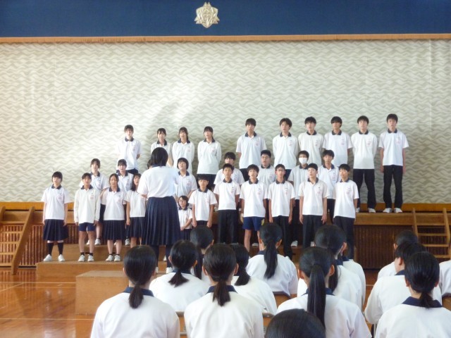 本日10月9日(木)6限に、3年生の合唱コンクールリハーサルがありました。練習の後には、「もっとがんばりたい」という前向きな感想が聞かれました。先生からは、「感動する合唱にしてほしい。普段の練習が大切です。」というアドバイスがありました。2週間後には2回目のリハーサルがあります。これからどのように取り組んでいくのか楽しみです。