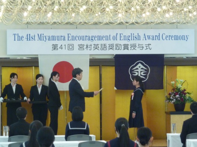 10月25日(土)、金沢市文化ホールにて「第41回宮村英語奨励賞授与式」が行われました。本校からは、小浦優奈さん(3年)が、日頃の英語学習の努力が認められ、見事、選考試験を合格し、宮村英語奨励賞を授与しました。また、小浦さんは、受賞者を代表して「これまで英語を学んできたことやこれからの夢」について立派に英語発表を行いました。授与式後、改めて、小浦さんに今後の目標を聞くと、「英語に関わる仕事に就きたい」と笑顔で話してくれました。今後のさらなる活躍を期待します。