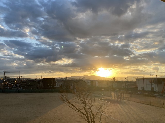 今日から12月です。今朝は、太陽が元気よく昇る姿が見られました。