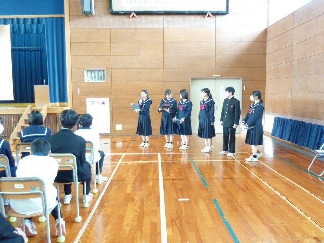 続いて、生徒指導担当より「思いやり」について、学習担当より「聴き方マスター」について話がありました。