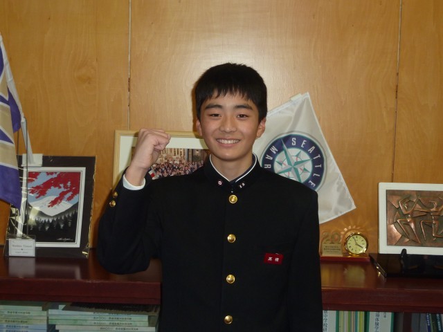 今日は、12月23日(火)に倉敷市で開催される「第18回全日本ユース(U16)水球競技選手権大会」に出場する道中佐和さん(1年)と1月7日(水)に長野県で開催される「SAJ菅平高原パインビークカップユース大会」に出場するために石川県の強化選手として12月25日(木)から強化合宿に参加する髙橋謙心さん(1年)が校長室へ出場報告に来てくれました。道中さんは「高校でも競技を続けたい」、髙橋さんは「全中に出場したい」とそれぞれに目標を語ってくれました。大会後の結果報告も楽しみにしています。頑張ってください。