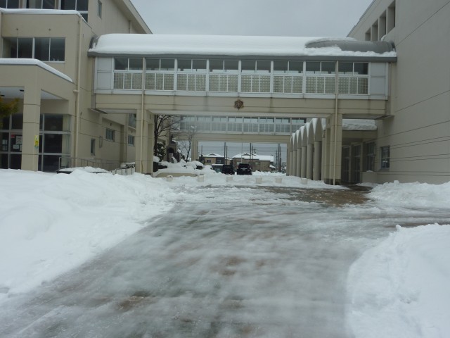 週末からの大雪の影響で、昨日【1月26日(月)】は金沢市立小中学校一斉に臨時休校となりましたが、先生方、校舎管理員の岡本さん、今朝【1月27日(火)】登校した3年4組の生徒たちが除雪をしてくれたお陰で、校舎周りはとてもきれいになりました。ありがとうございました。まだまだ、道には雪がありますので、自動車には気をつけ、時間に余裕を持ち行動してください。