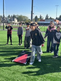 ロバート・イーグルスタッフ・ミドルスクール 授業1日目歓迎式典の後に、外での活動...