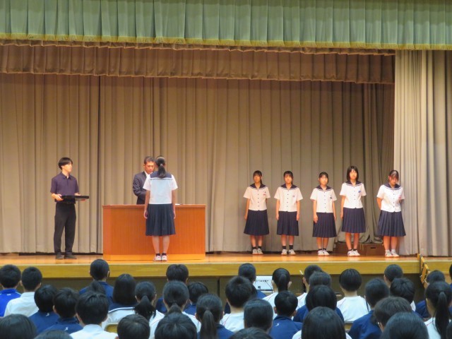 昨日は、全校集会に先立ち、後期生徒会役員任命式が行われました。