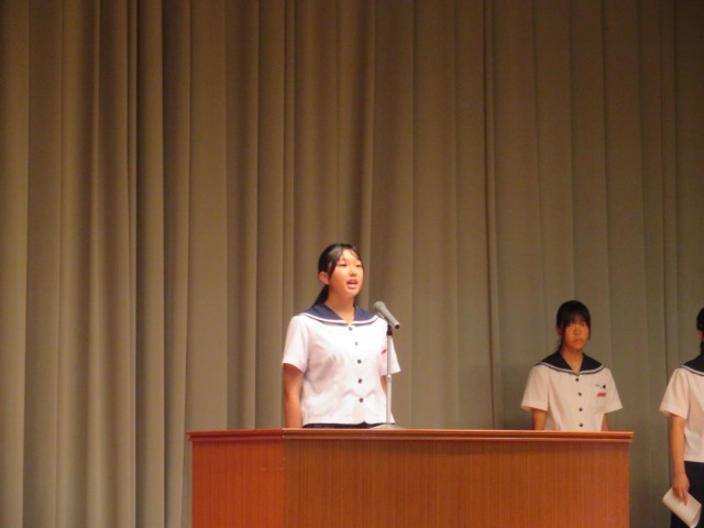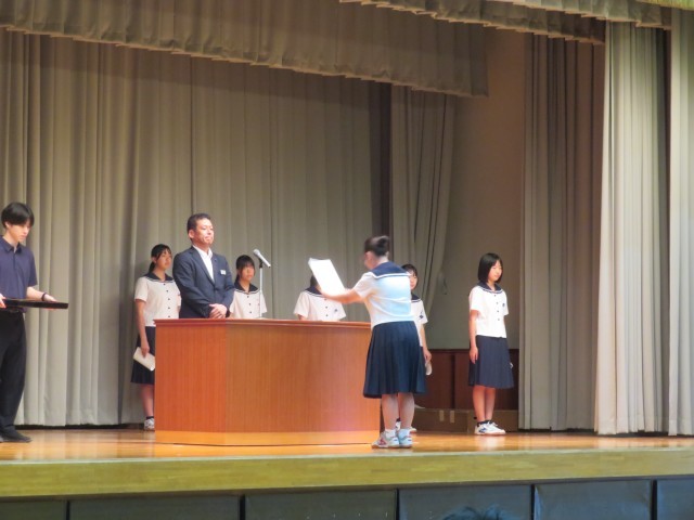 会長となる檜原さんは、「みんなと力を合わせて、よりよい清泉中学校をつくっていきましょう」と全体にエールを送っていました。