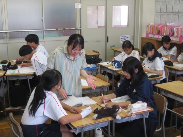 黙々とワークをこなす生徒や、分からないところをお互い教え合う生徒、先生に質問する生徒など、
