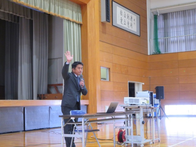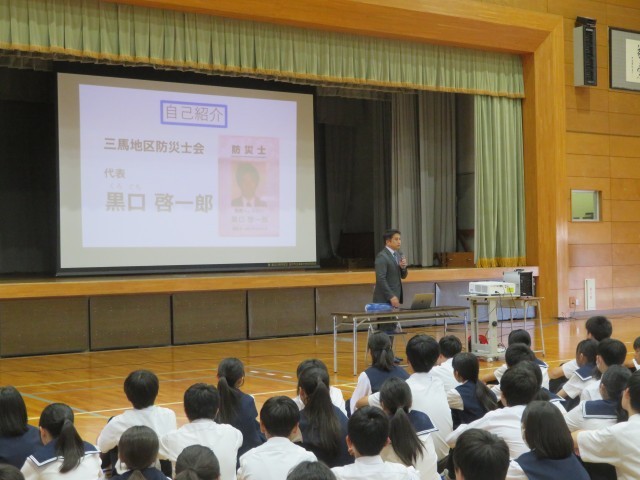 訓練のあと、三馬地区防災士会の代表である黒口さんに講演していただきました。