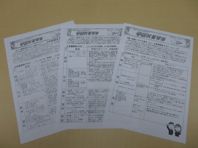 期末テストの範囲発表 公開日 2025/11/06 更新日 2025/11/06 学校のようす 11月6日(木)本日、2学期の期末テストの範囲が発表されました。生徒は6限目に、範囲表を見ながらフォーサイト手帳を記入する様子が見られました。テストは11月20日(木)、21日(金)の二日間で行われます。自分の学びを調節しながら準備していきましょう。