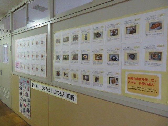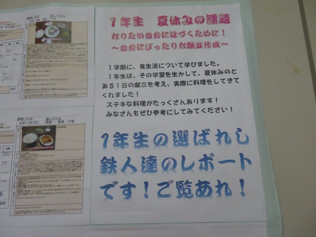 掲示物は、夏休みを中心に生徒が自分の家で作った料理についてレポートしたものです。