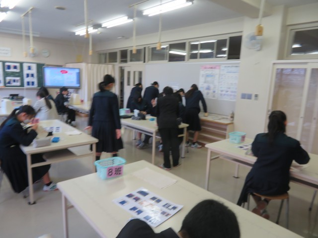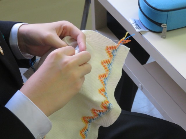スウェーデン刺繍(家庭科) 公開日 2025/12/17 更新日 2025/12/17 学校のようす 12月17日(火)家庭科の授業では、クッションづくりが行われています。クッションカバーに、スウェーデン刺繍で模様を縫っていきます。布にアイロンをかけたり、端をミシンで縫い合わせたりもします。時間内に完成させようと、生徒も一生懸命です。