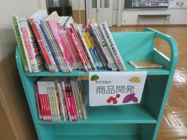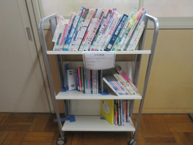 各フロアにはキャスター付きのラックが設置されており、そこには現在、授業で学習している内容等に関係する書籍が並べられています。