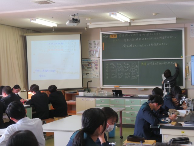 2年生の理科の授業では、熱量について、実験データから法則を導き出す授業が行われていました。