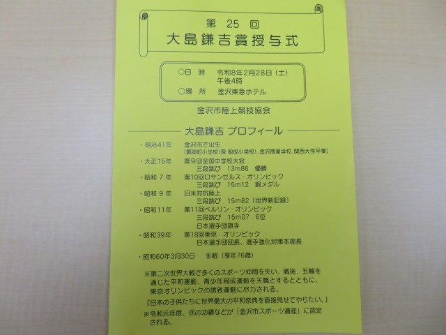 大島謙吉賞授与式(陸上競技部) 公開日 2026/03/02 更新日 2026/03/02 学校のようす 3月2日(月)今日から3月です。主な予定として「14日(土)卒業式、24日(火)終業式、26日(木)離任式」となっています。詳しくは、ホームページの3月行事予定をご確認ください。週末に、「大島謙吉賞授与式」(金沢市陸上競技協会)がありました。本校の陸上部から8名が受賞しました。今年度の全日本中学校陸上競技選手権大会に出場した活躍が認められての受賞です。