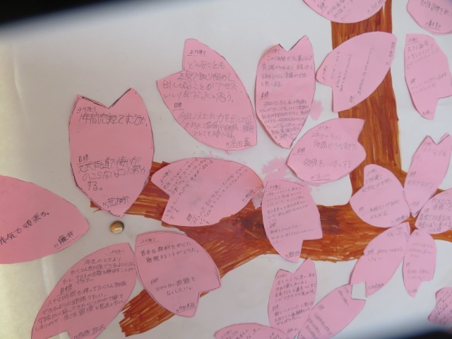 2年生の学年のフロアに、今年度の振り返りと来年度の目標が掲示されています。