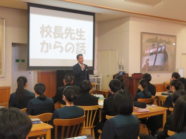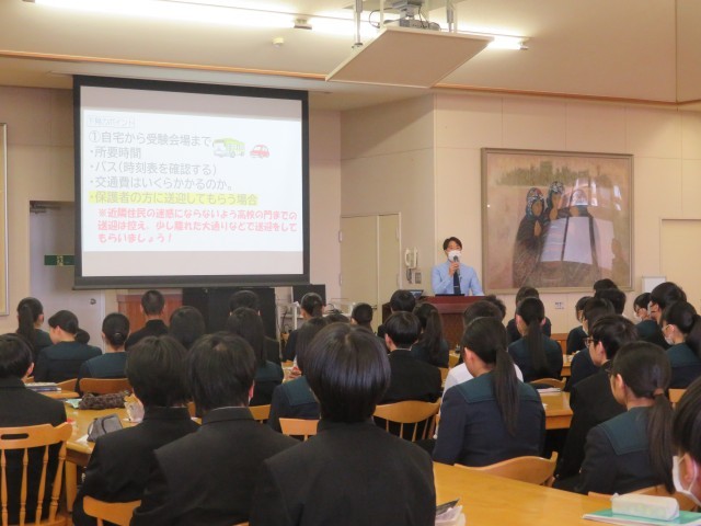 公立入試の事前集会 公開日 2026/03/09 更新日 2026/03/09 学校のようす 3月9日(月)明日から、県立高等学校の入試がはじまります。本日、事前の学年集会がありました。校長先生からは、平常心で、準備してきたことが一つでも生かされるよう頑張ってきてほしいというお話がありました。また、諸注意のあと、各教科担当の先生から最後のアドバイスがありました。明日から2日間、いよいよです。頑張れ3年生!
