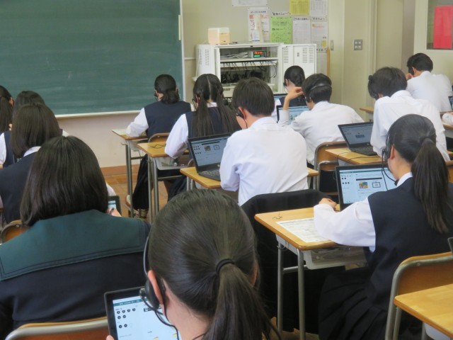 英語科での1人1台端末を用いた調査も大きなトラブルはなく、スムーズに終了しました。